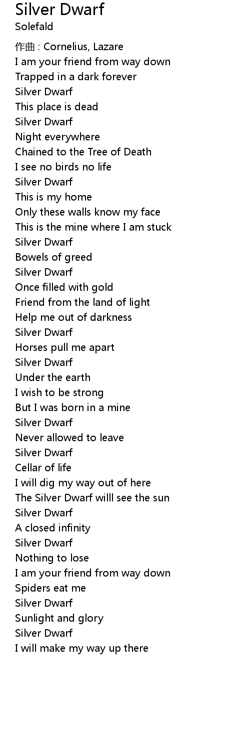| Song | Silver Dwarf |