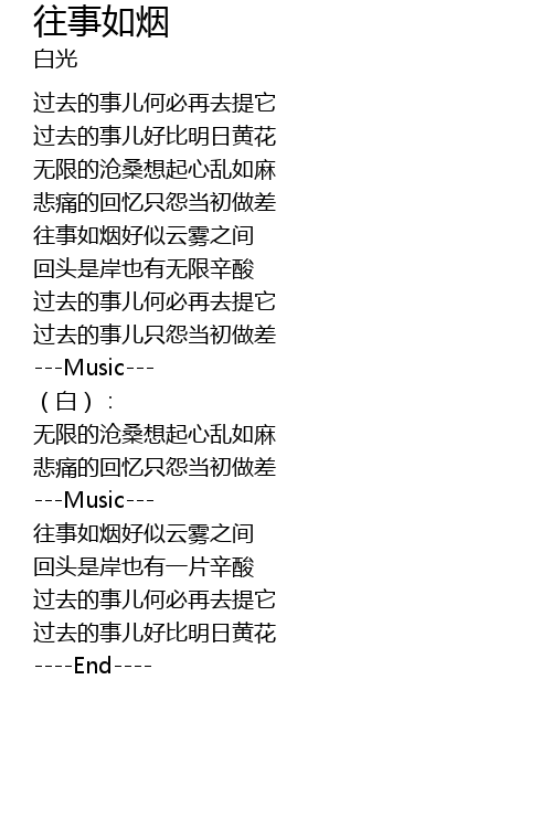 | [00:28.52] | 过去的事儿好比明日黄花 |