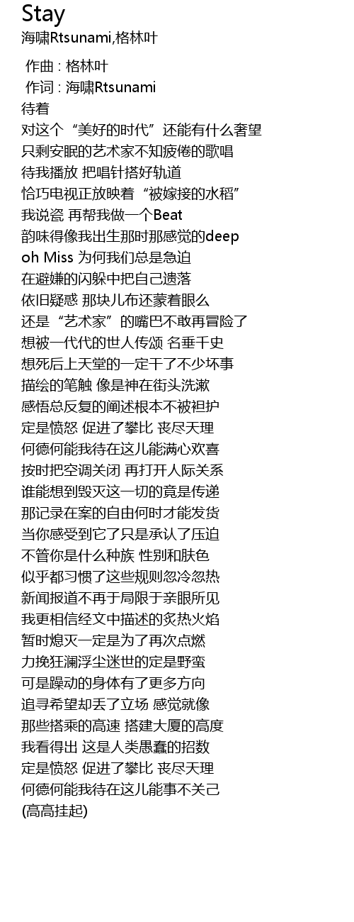 | [00:01.000] | 作词 : 海啸Rtsunami |