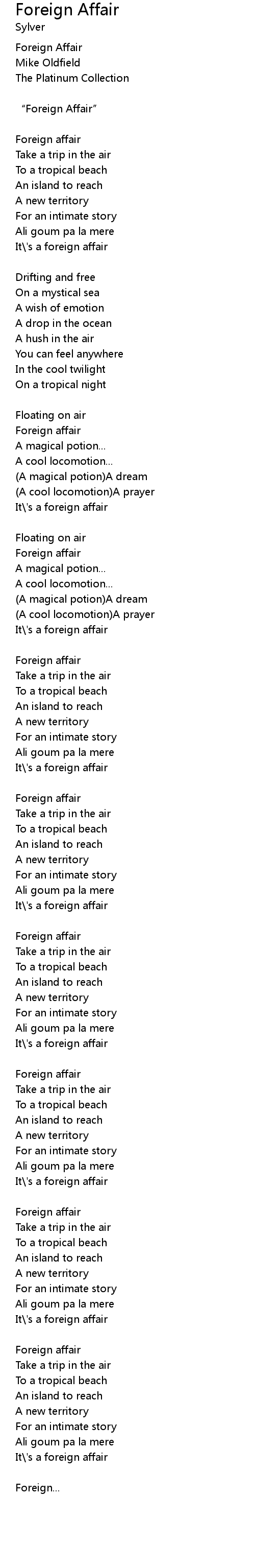| Foreign Affair | |