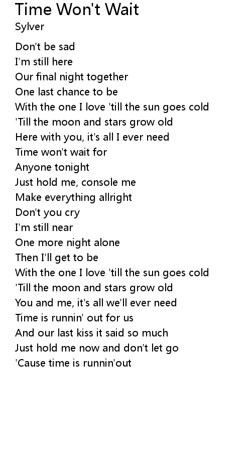 | Time won't wait for | |