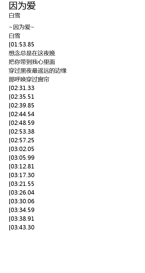 | [01:37.31][03:34.59][04:13.56] | 让生命变得不再苍白 |