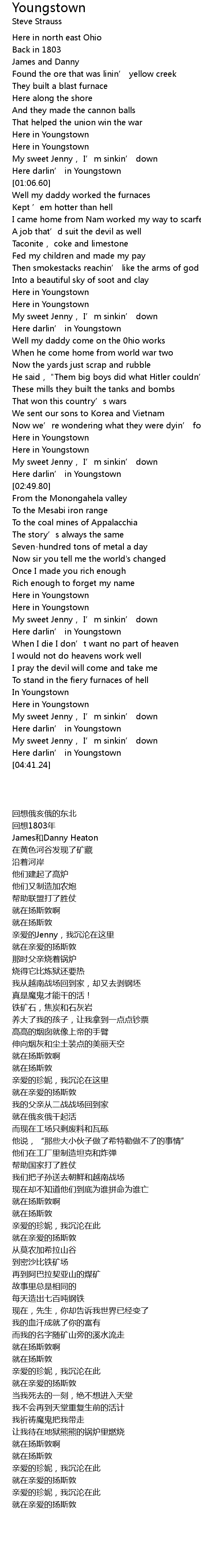 | [03:57.44] | Here darlin' in Youngstown |