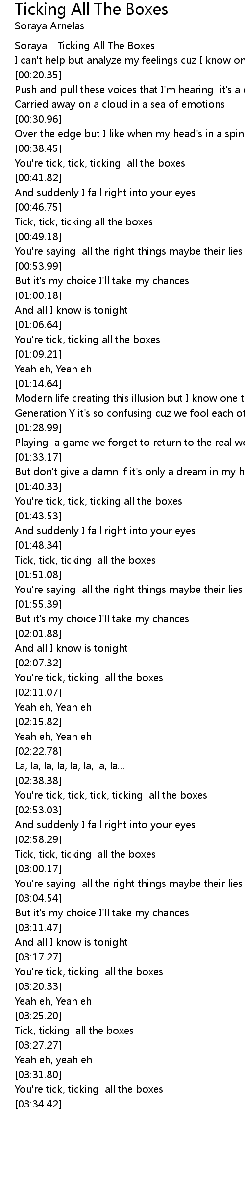 Soraya - Ticking All The Boxes |