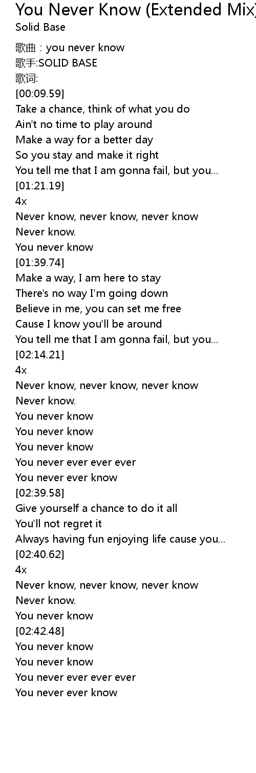 | [00:04.71] | gē shǒu: SOLID BASE |