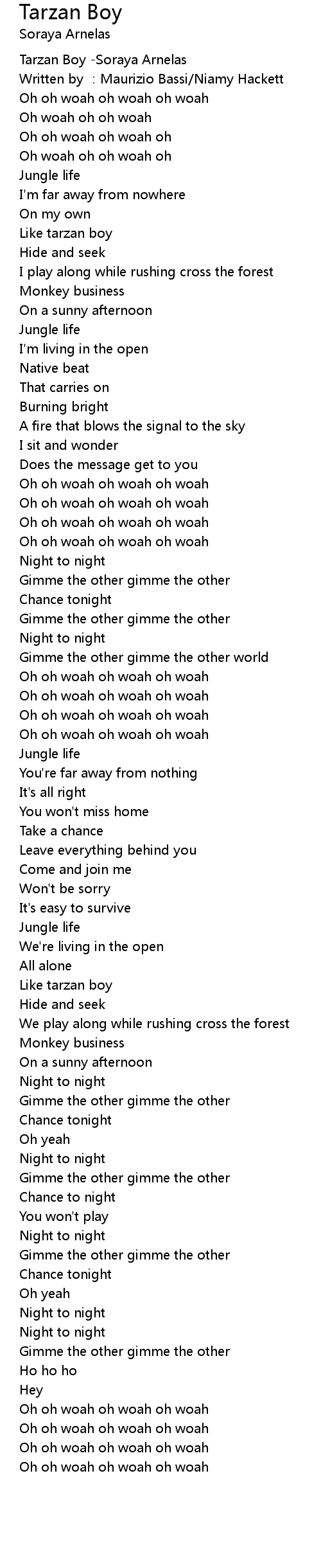 | [00:01.02] | Tarzan Boy Soraya Arnelas |
