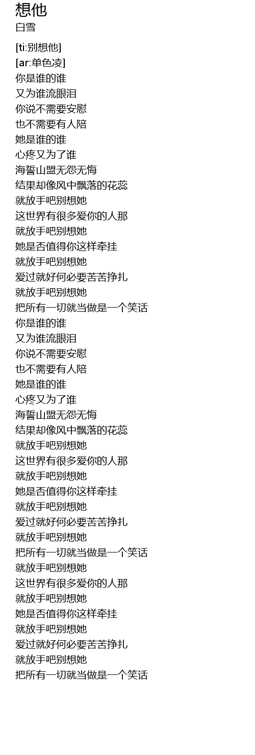 | [00:58.530] | 就放手吧别想她 |