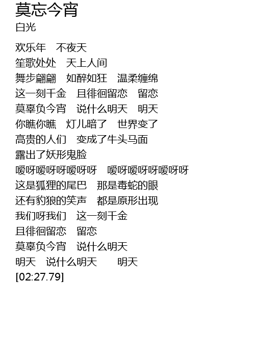 | [02:11.10] | 莫辜负今宵 说什么明天 |