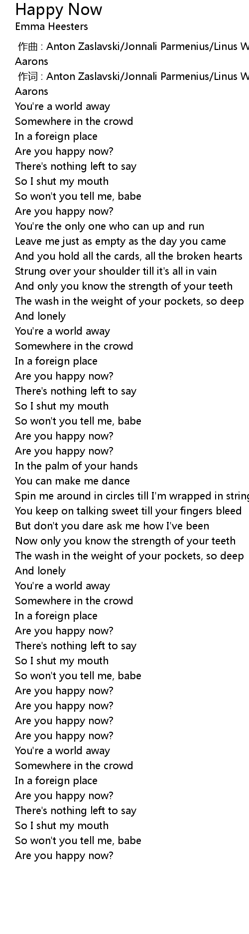| [00:00.690] | 作词 : Anton Zaslavski/Jonnali Parmenius/Linus Wiklund/Sarah Aarons |