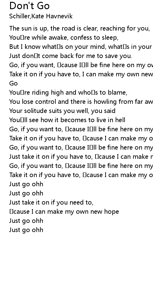 | Go, if you want to, cause Ill be fine here on my own, | |