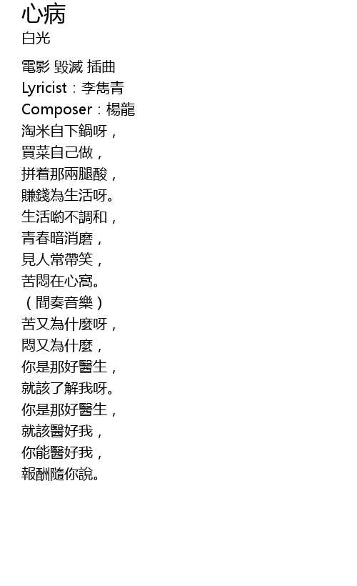 | [02:17] | nǐ shì nà hǎo yī shēng, |
