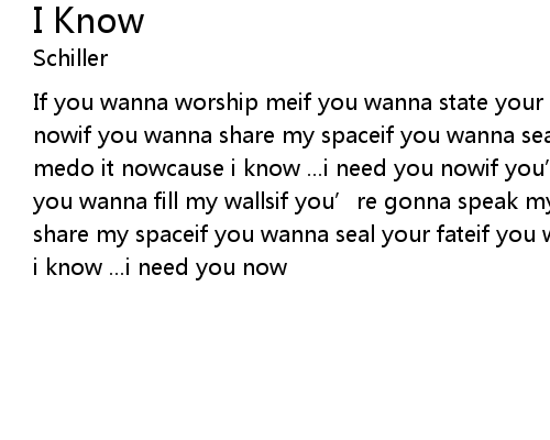 | If you wanna worship meif you wanna state your claim if you wanna follow medo it nowif you wanna share my spaceif you wanna seal your fateif you wanna melt with medo it nowcause i know ... i need you nowif you' re gonna read my thoughtsif you wanna fill my wallsif you' re gonna speak my namesay it nowif you wanna share my spaceif you wanna seal your fateif you wanna melt with medo it nowcause i know ... i need you now |