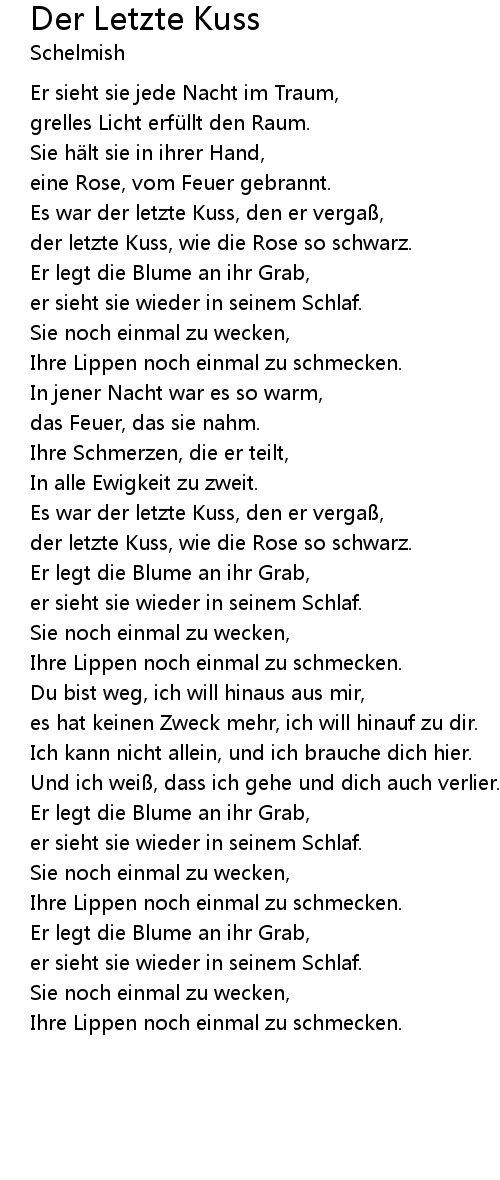 | Es war der letzte Kuss, den er verga, | |