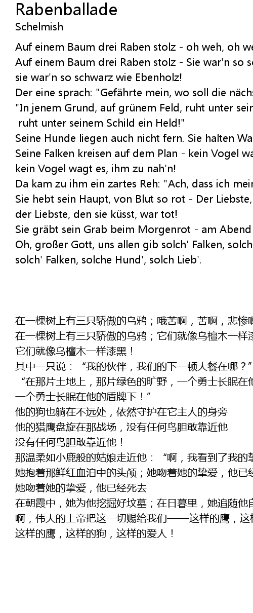 | Auf einem Baum drei Raben stolz oh weh, oh weh, oh Leid, oh weh | |