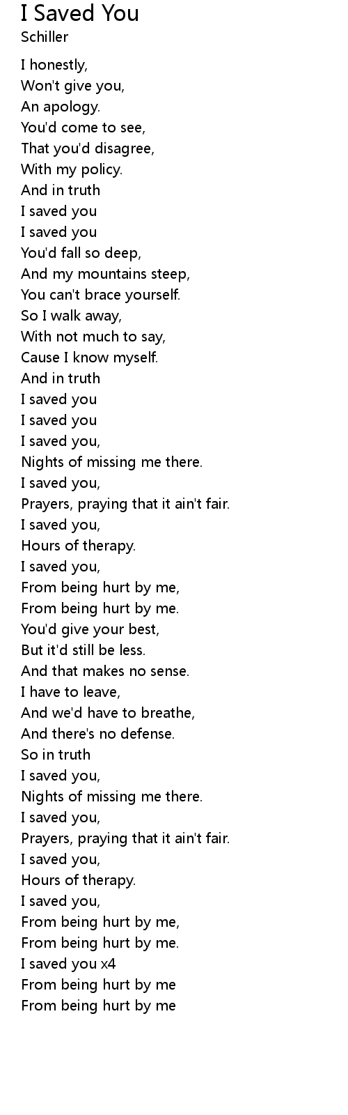 I Saved You Lyrics