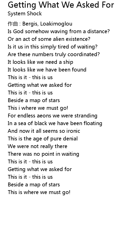 | Song | Getting What We Asked For |