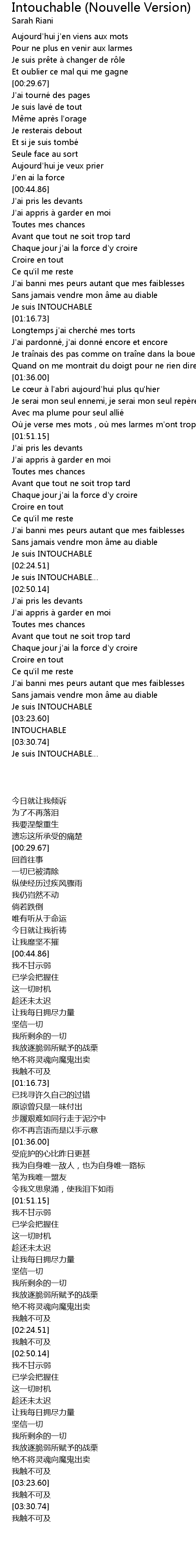 | [03:34.94] | Je suis INTOUCHABLE… |