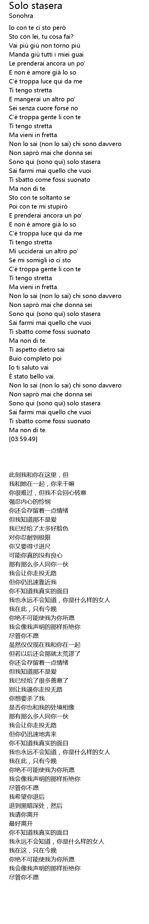 | [03:40.99] | Sono qui (sono qui) solo stasera |