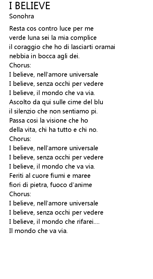 | I believe, nell'amore universale | |
