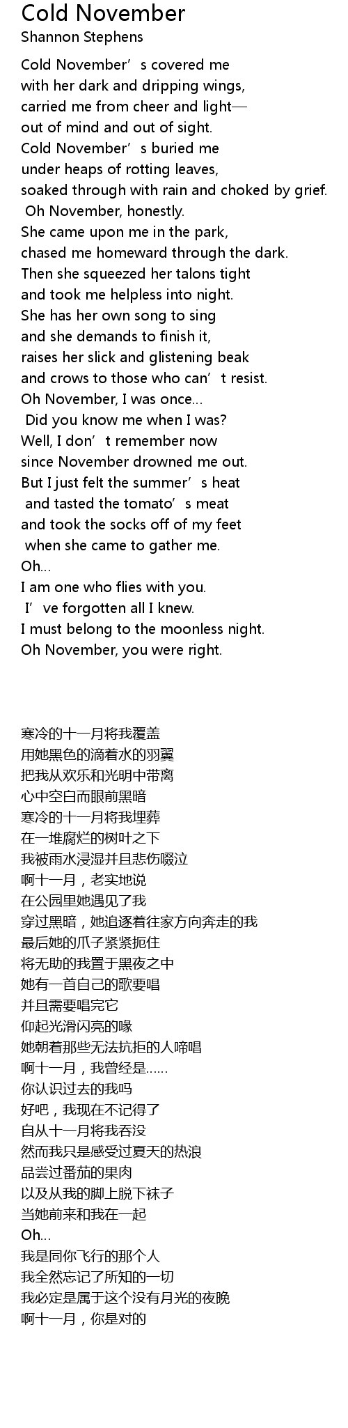 | [02:38.180] | Oh November, I was once… |
