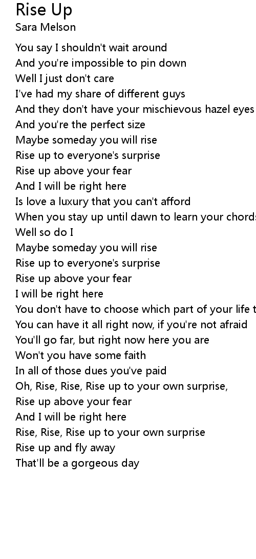 Oh, Rise, Rise, Rise up to your own surprise, |