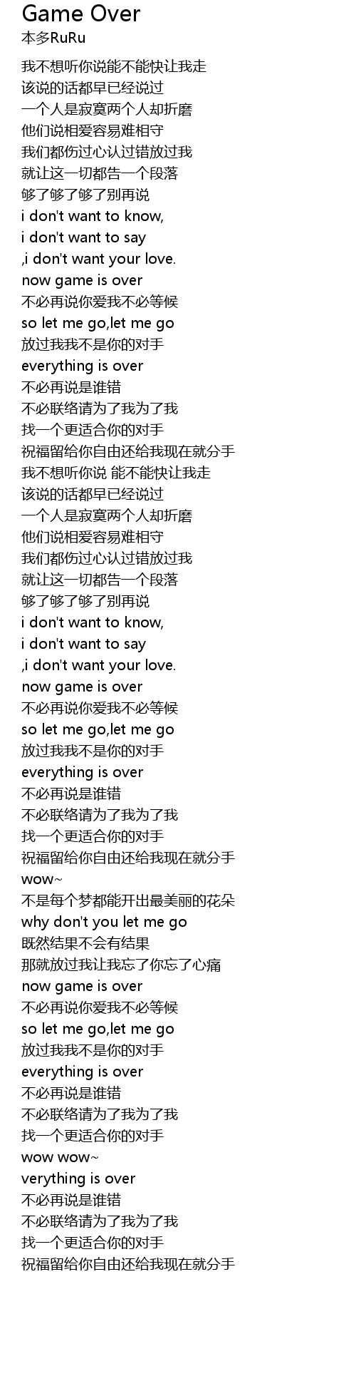 | [01:08.24] | fàng guò wǒ wǒ bú shì nǐ de duì shǒu |