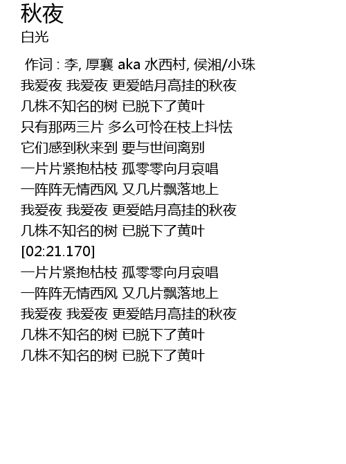 | [02:55.020] | 我爱夜 我爱夜 更爱皓月高挂的秋夜 |