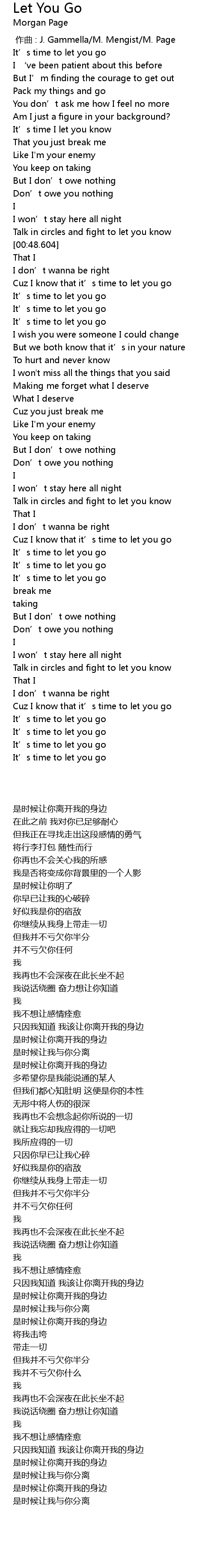 | [02:45.241] | Cuz I know that it' s time to let you go |