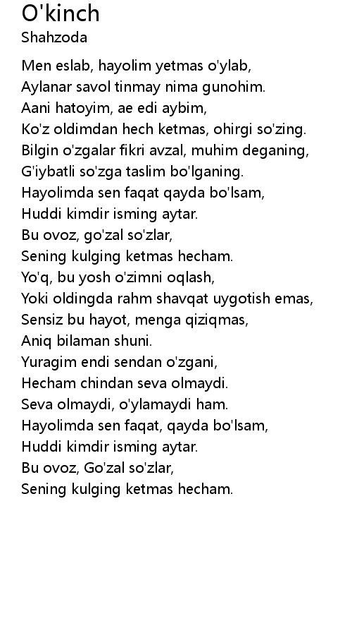| Bu ovoz, go'zal so'zlar, | |