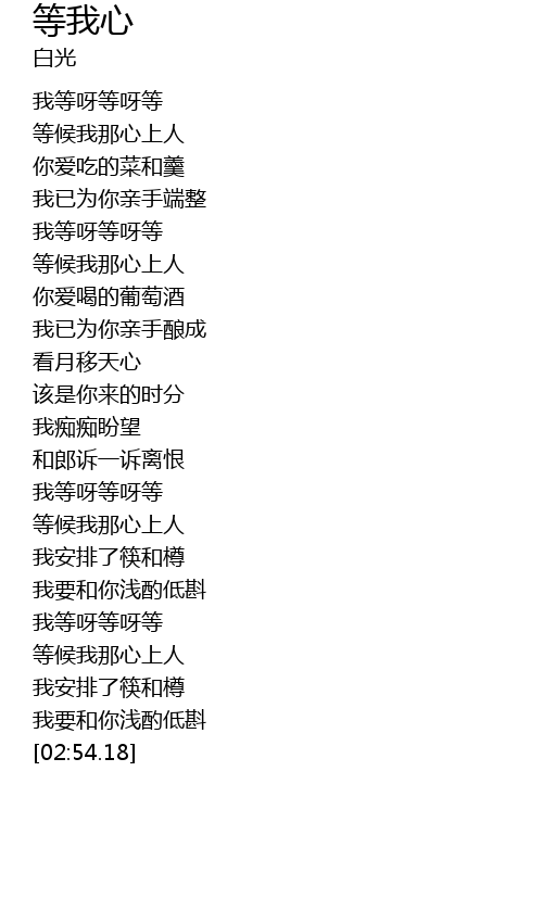 | [02:33.53] | 等候我那心上人 |