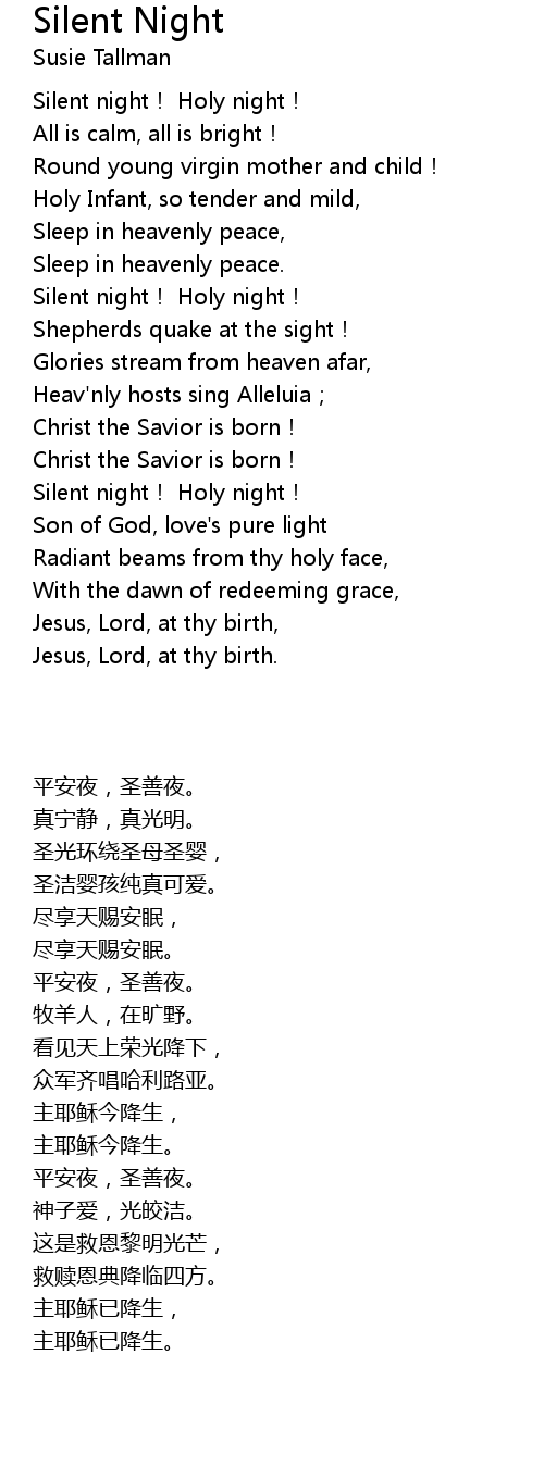 | [02:28.675] | Silent night! Holy night! |