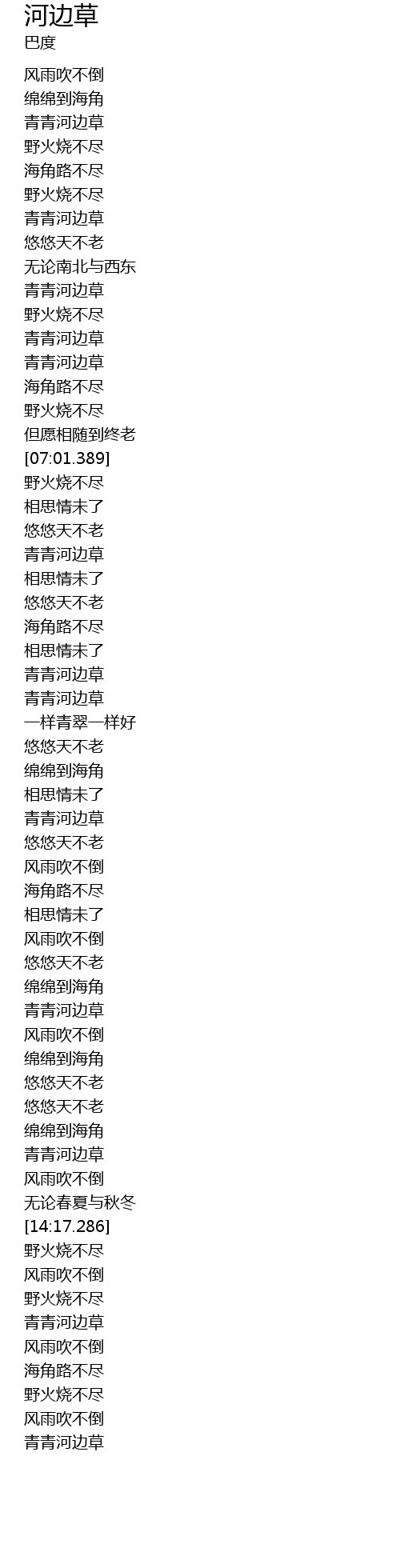 | [03:57.48] | qīng qīng hé biān cǎo |