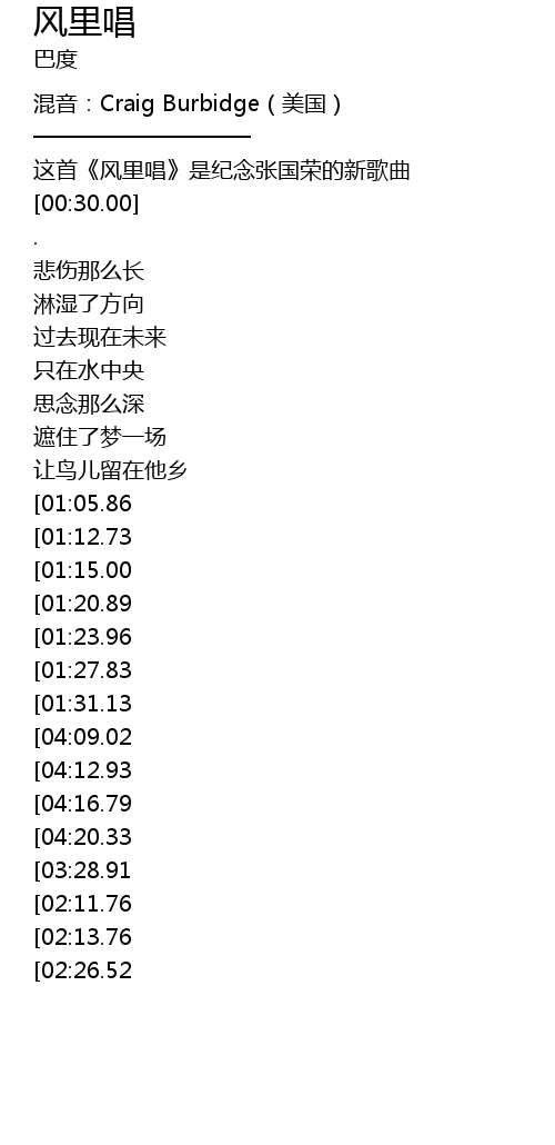 | [00:25.00] | 这首《风里唱》是纪念张国荣的新歌曲 |