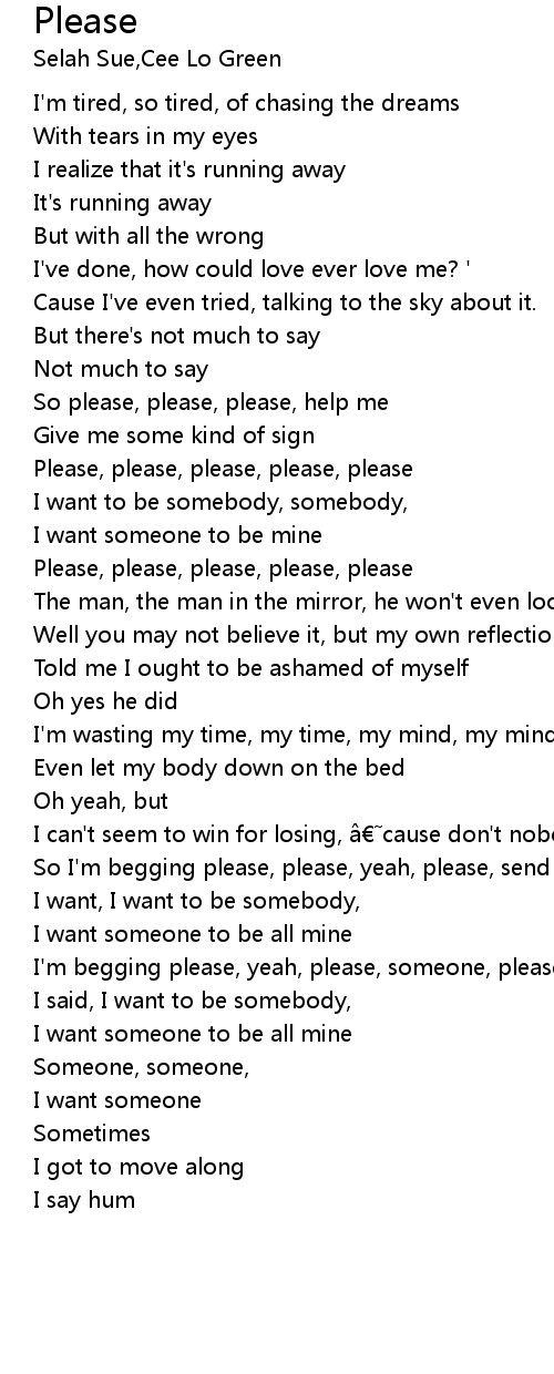 | I' m begging please, yeah, please, someone, please, please, someone please | |