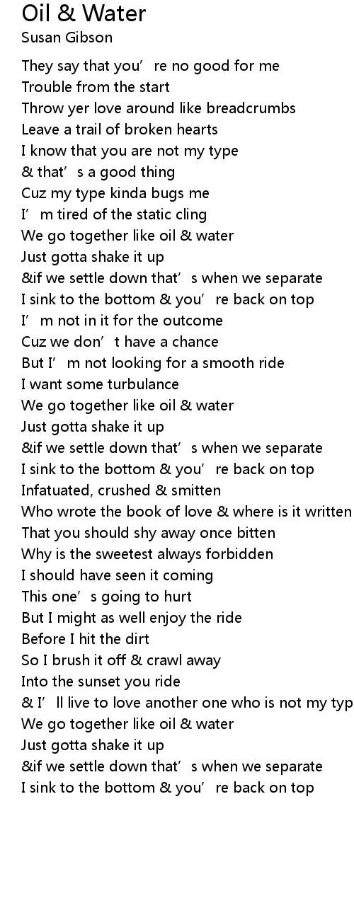 | We go together like oil water | |