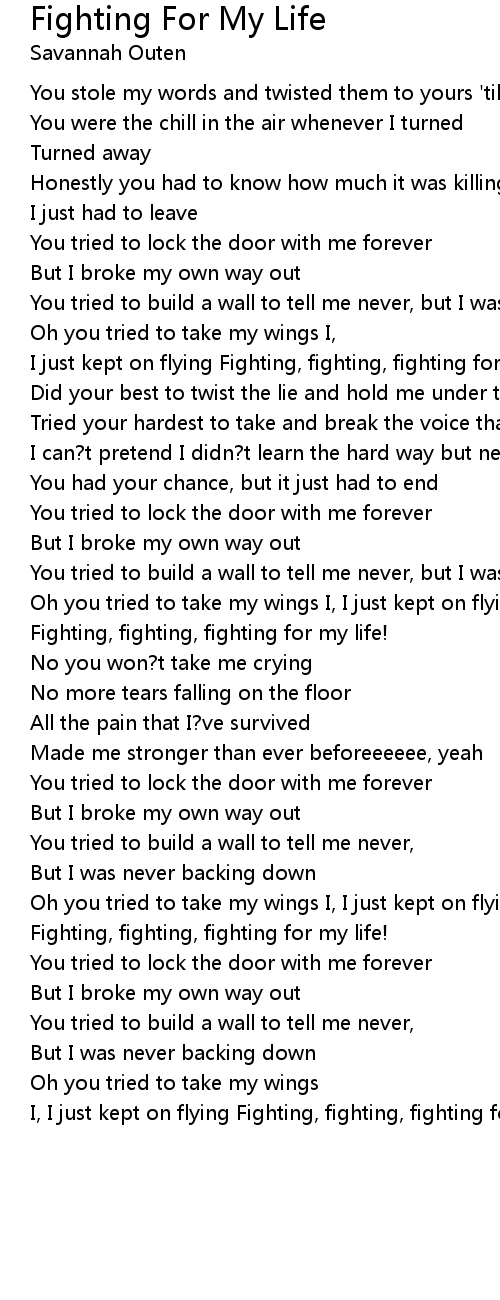 I, I just kept on flying Fighting, fighting, fighting for my life! |