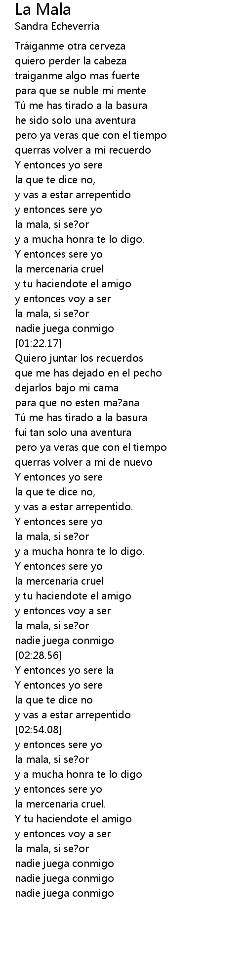 | [02:22.86] | la mala, si se?or |