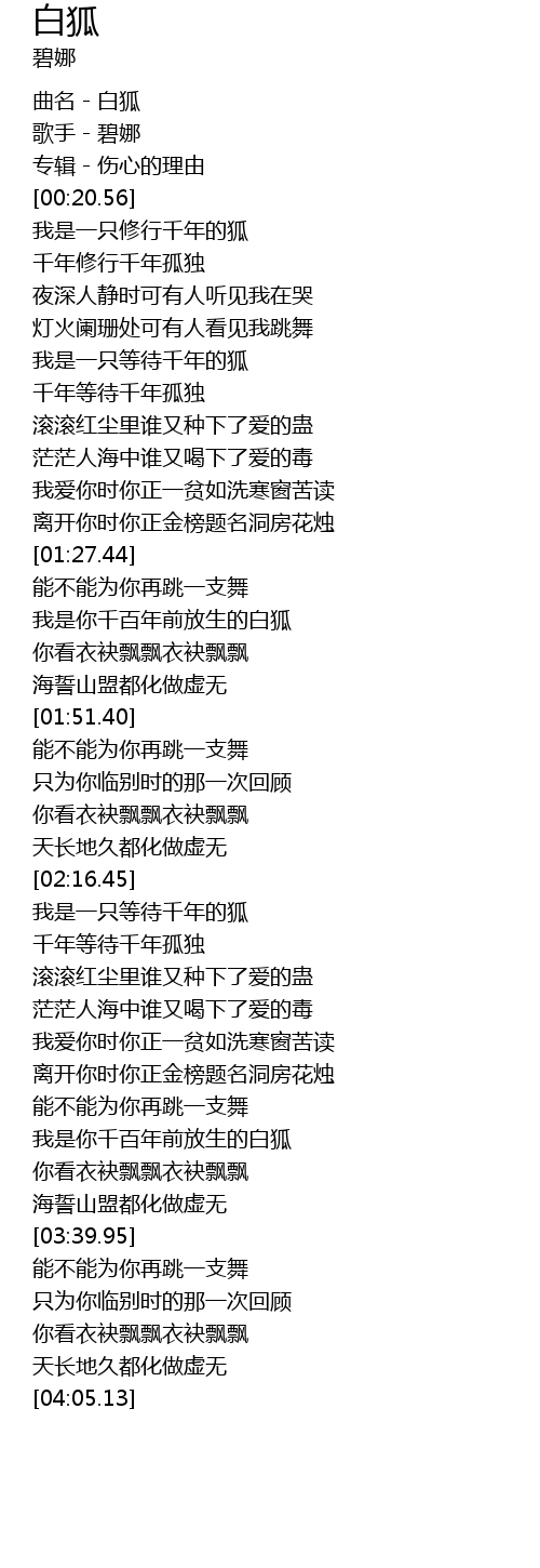 | [03:21.76] | 我是你千百年前放生的白狐 |