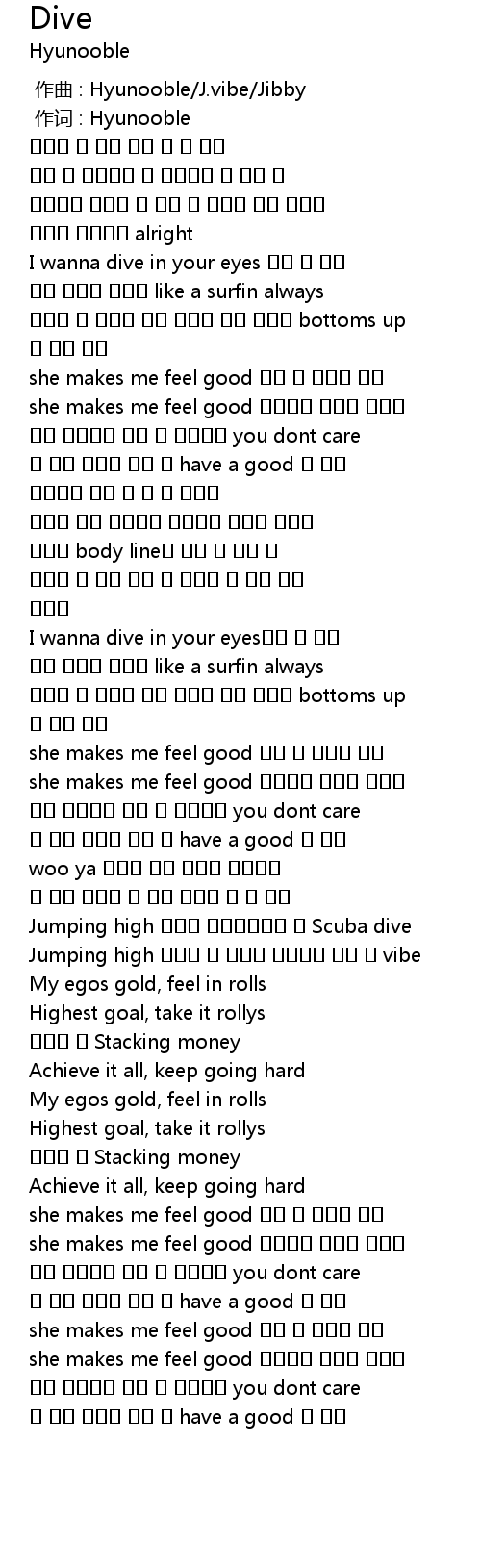 | [02:04.200] | Jumping high 바다로 뛰어들어가는 넌 Scuba dive |