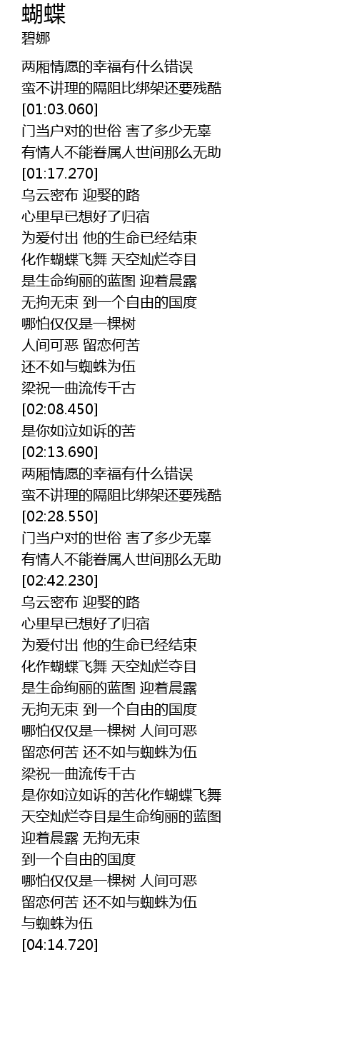 | [02:56.260] | 化作蝴蝶飞舞 天空灿烂夺目 |