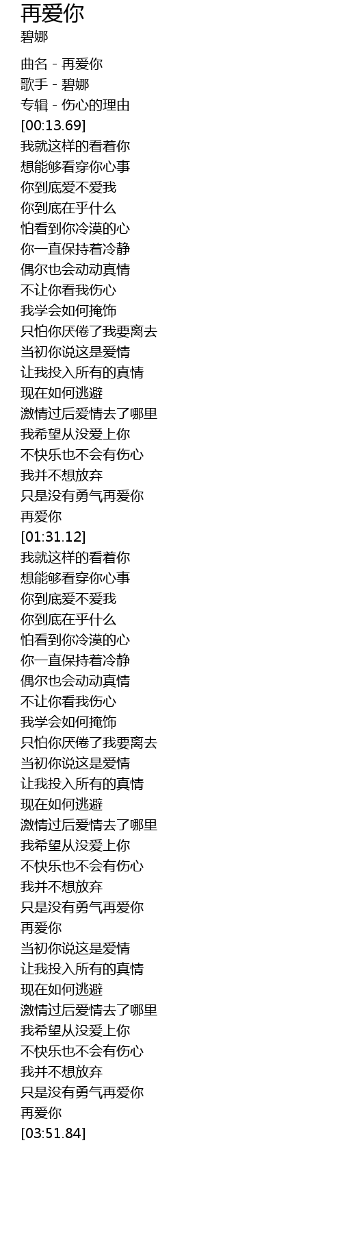 | [03:03.61] | zhi shi mei you yong qi zai ai ni |