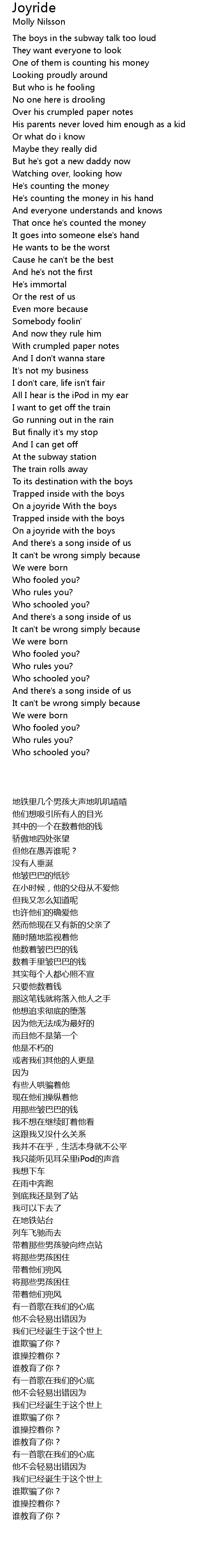 The boys in the subway talk too loud |