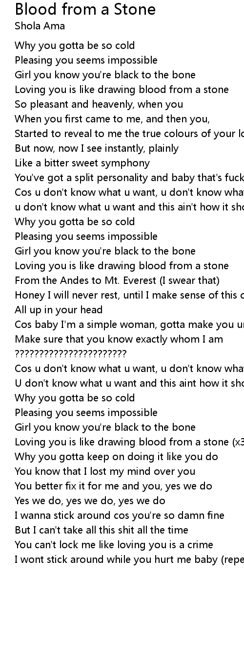 Loving you is like drawing blood from a stone |