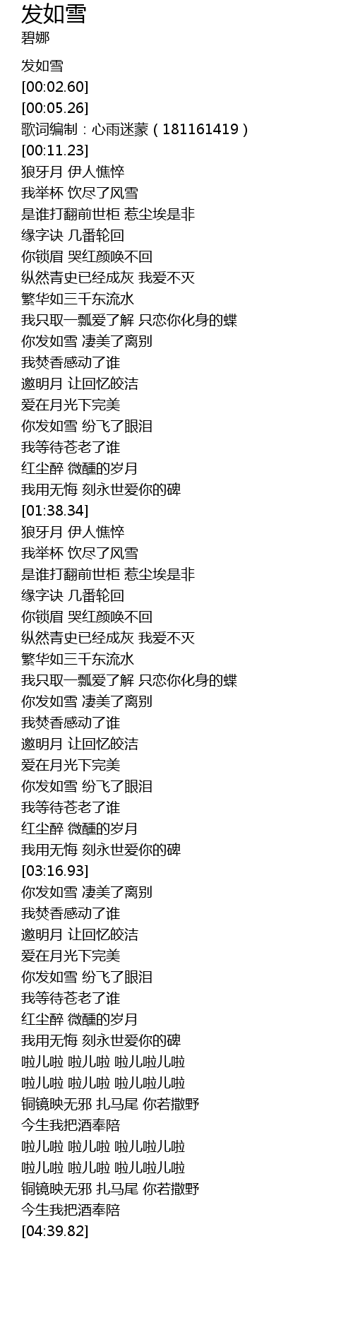 | [03:46.81] | 你发如雪 纷飞了眼泪 |