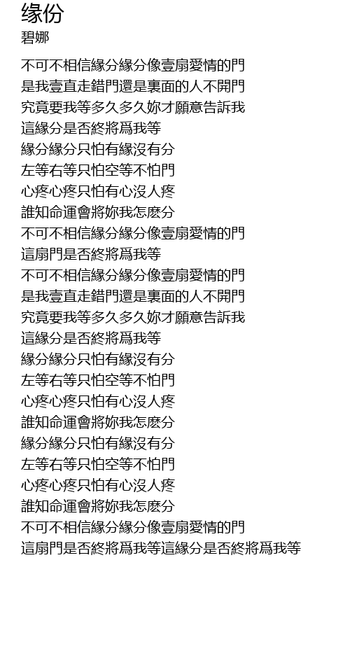 | [03:22.20] | 不可不相信緣分緣分像壹扇愛情的門 |