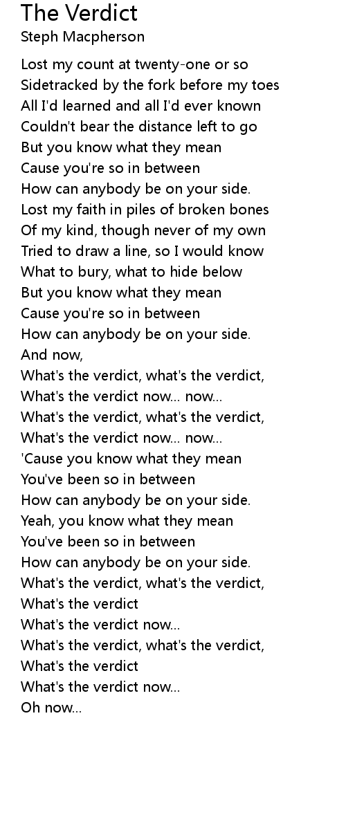 What's the verdict, what's the verdict, |