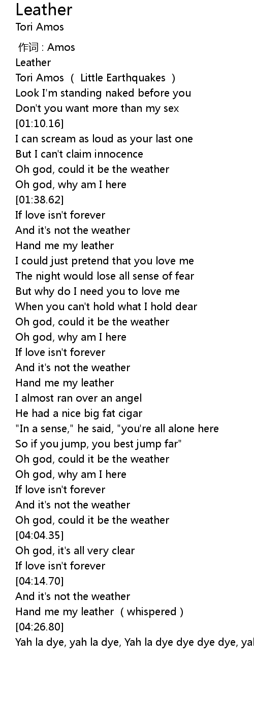 | [00:26.07] | Tori Amos ( Little Earthquakes ) |