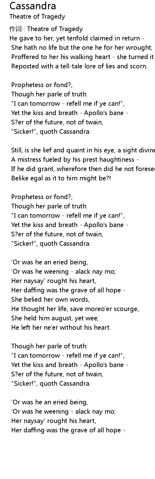 | 作词 : Theatre of Tragedy | |