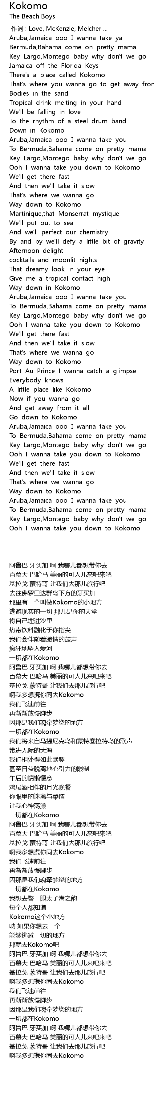 | [03:32.41] | Ooh I wanna take you down to Kokomo |