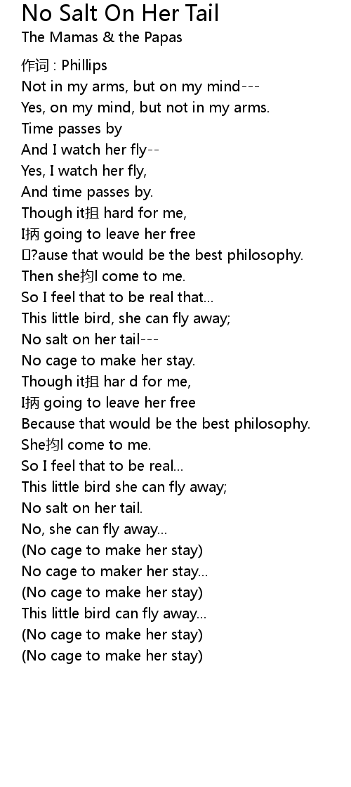 | (No cage to make her stay) |